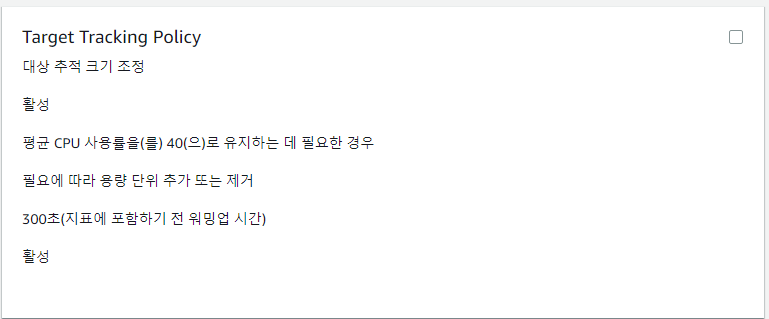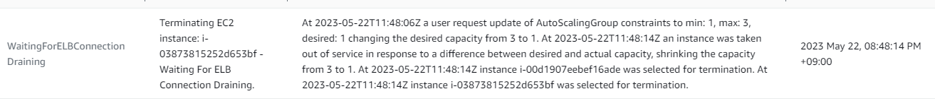 - 한번 스케일링 작업이 발생하면 설정에 따라 (기본 5분) 추가 인스턴스를 실행 또는 종료 불가