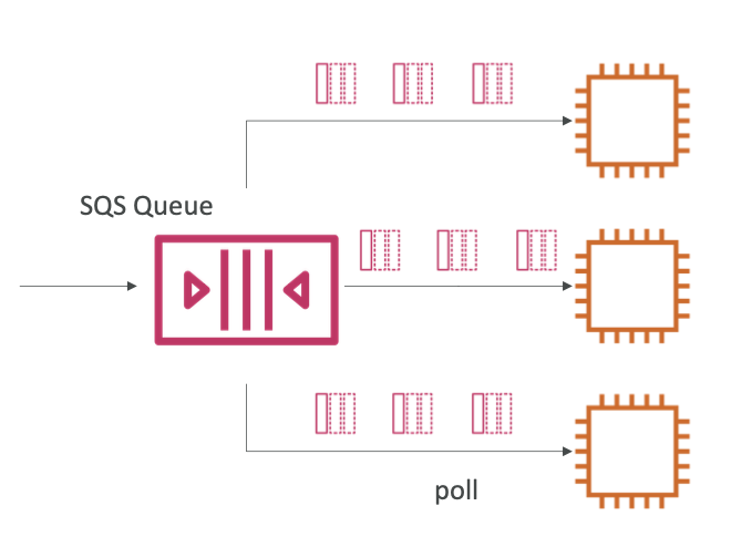 - 소비자가 SQS 대기열에서 pull해서 가져옴
