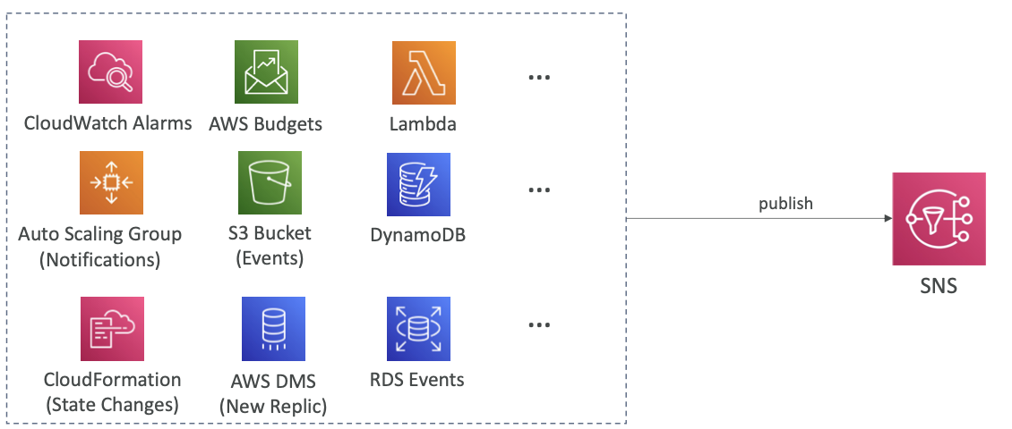 - 팬아웃 아키텍쳐와 결합하면 SNS와 SQS를 결합하거나 SQS FIFO와 SNS FIFO 토픽을 결합 가능