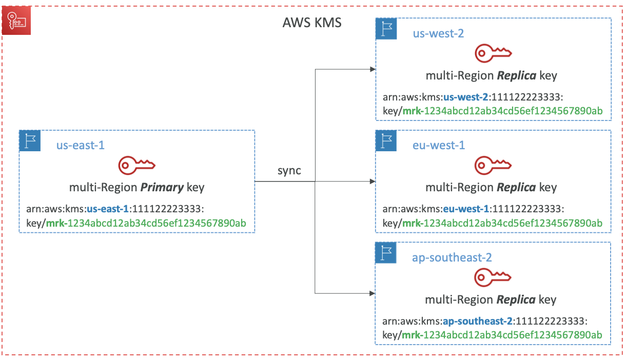 - 기본키로부터 키 구성요소가 복제된다 → 다른 리전도 동일한 키를 갖는다