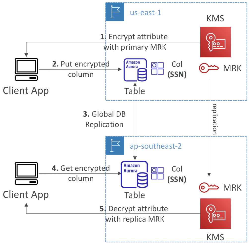 Aurora DB 전역 테이블과 DynamoDB 전역 테이블에서 클라이언트측 암호화 다중리전키를 사용하는 이유