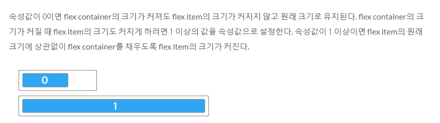 flex-grow : 값에 따라서 flexbox가 item보다 클 때 박스 내에서 차지하는 영역이 달라진다.