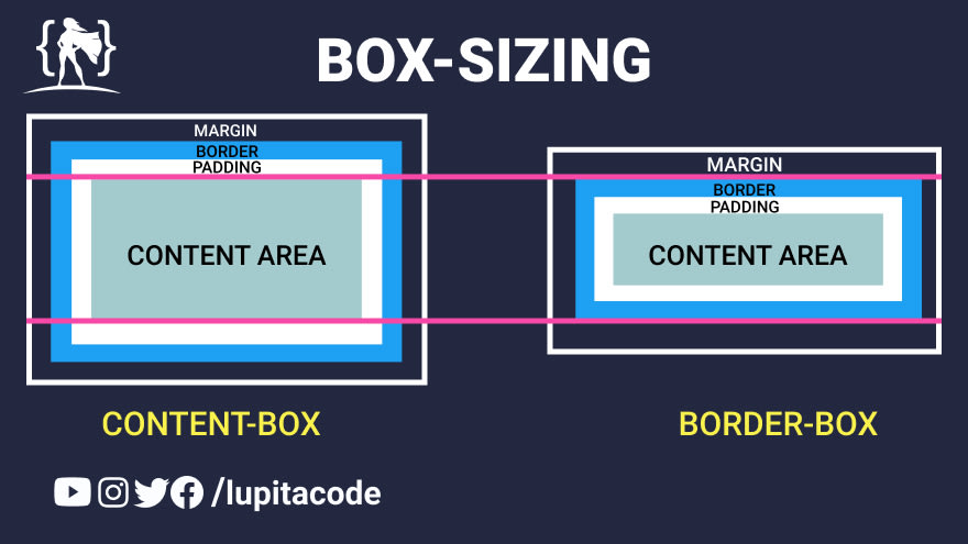 content-box는 컨텐츠를 기준으로 너비를 정하고 border-box는 콘텐츠 영역의 테두리(border)까지 포함해서박스 사이즈를 정하게 됩니다. 주로 border-box로 적용시키며 content-box로 할 경우 지정한 사이즈가 예상보다 커지는 경우가 발생하게 되므로 잘 사용하지 않는다고 합니다.