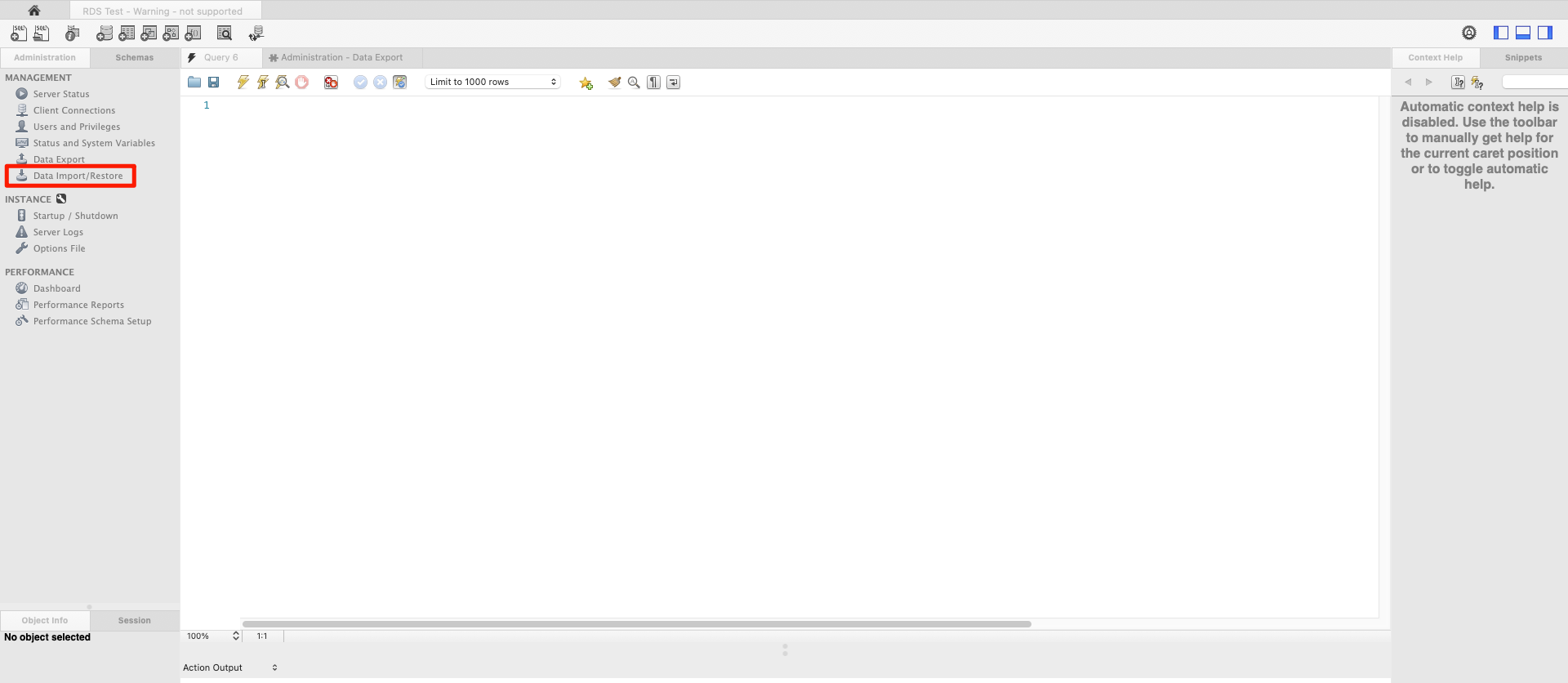 2. 좌측 Data Import / Restore 클릭