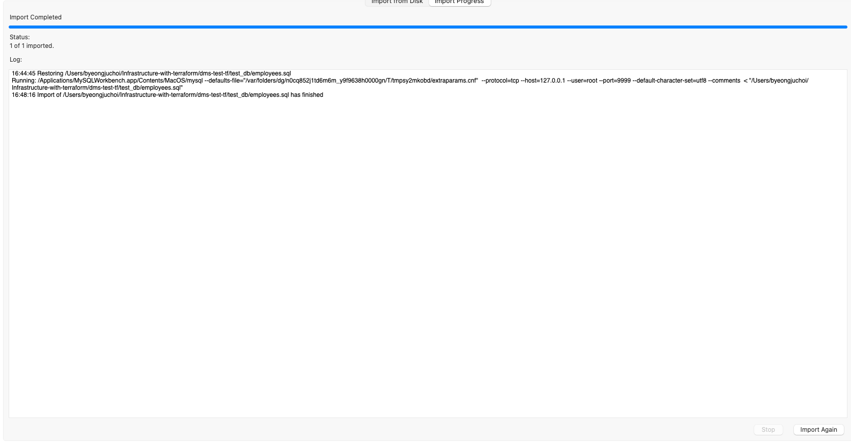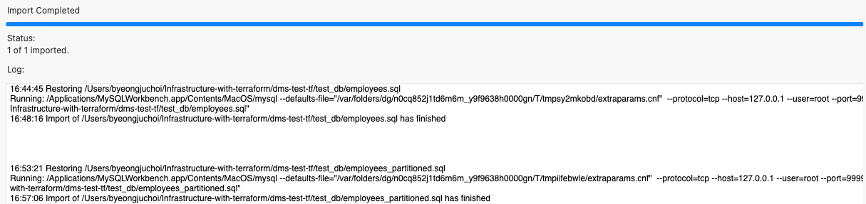 source /Users/byeongjuchoi/Infrastructure-with-terraform/dms-test-tf/test_db/load_salaries1.dump;