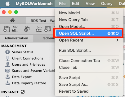 - Open SQL Script항목을 클릭합니다.