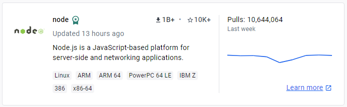 # 도커가 node라는 이름의 이미지가 존재하며 그것을 찾을 수 있음
