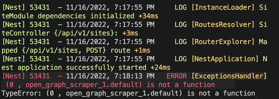 This is my logger.ts file that error happens there: import logger from "pino"; import dayjs from "dayjs"; const log = logger({ prettyPrint: true, base: { pid: false, ...